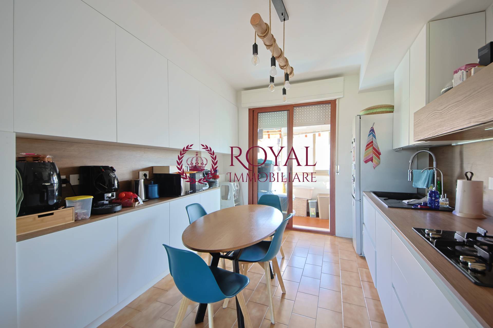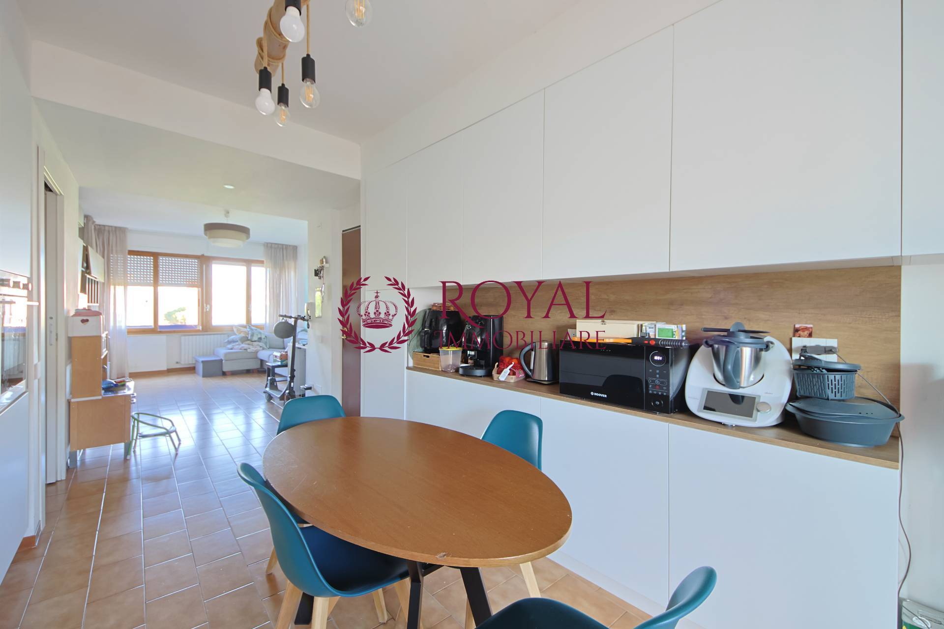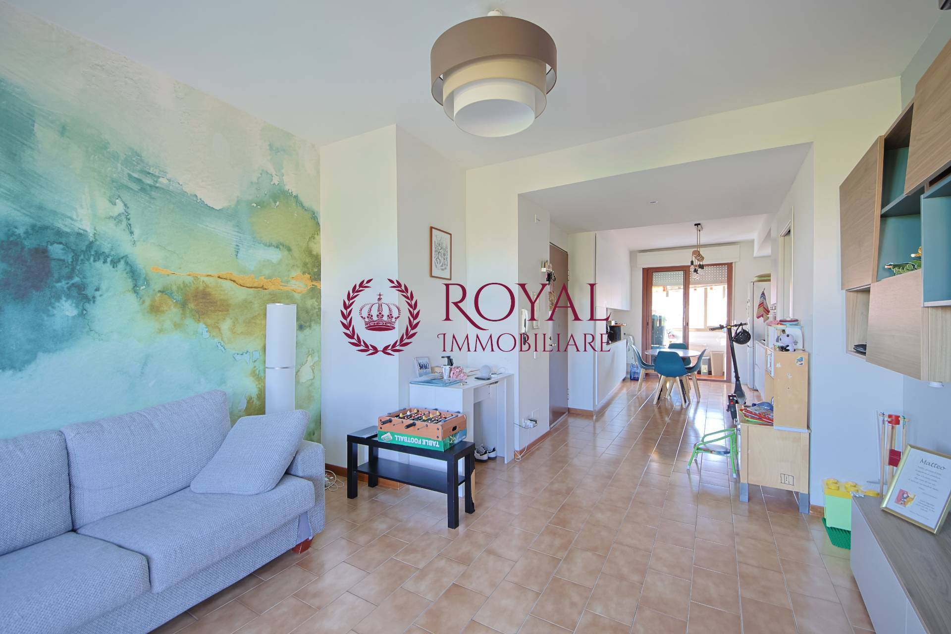 COTETO - RIF. RD6950 - In contesto moderno e molto ben tenuto, proponiamo luminosissimo Appartamento posto al quarto piano con ascensore e composto da: Ingresso in zona living suddivisa in salone con terrazzo simiabitabile con affaccio ad ovest e cucina abitabile, dotata di tutti i confort, arredata ed equipaggiata e servita da comodo pratico balcone verandato adibito a zona lavanderia. Una comoda porta a scomparsa divide la zona giorno dalla zona notte, dove troviamo le tre camere, di cui una matrimoniale, una media ed una singola e i due bagni.