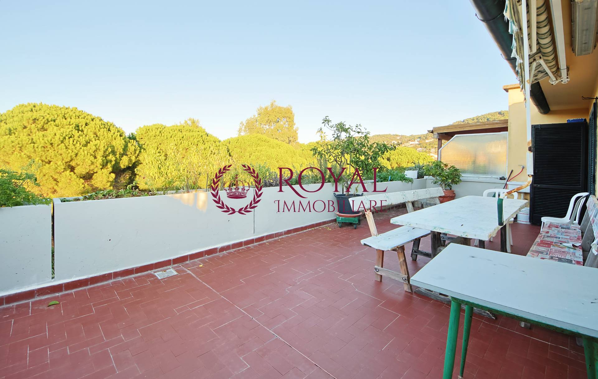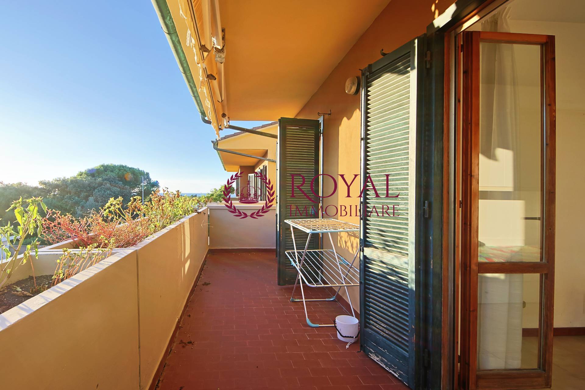 terrazzo vista mare, bagno con finestra completa la proprietà un terrazza di 40 metri quadrati circa con ripostiglio per sdraio o quant' altro con vista Gorgona ideale per cene e pranzi all' aperto.