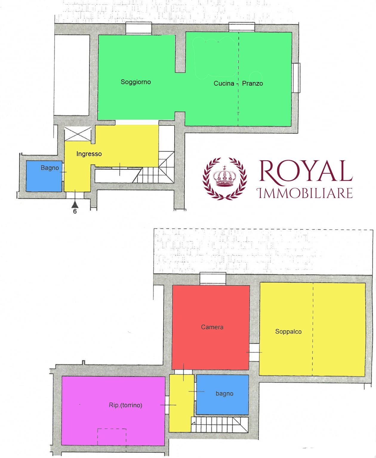 Situato al piano terra, l’Appartamento è così composto: ingresso in corridoio, sala, cucina abitabile e soppalco con una camera matrimoniale e bagno.